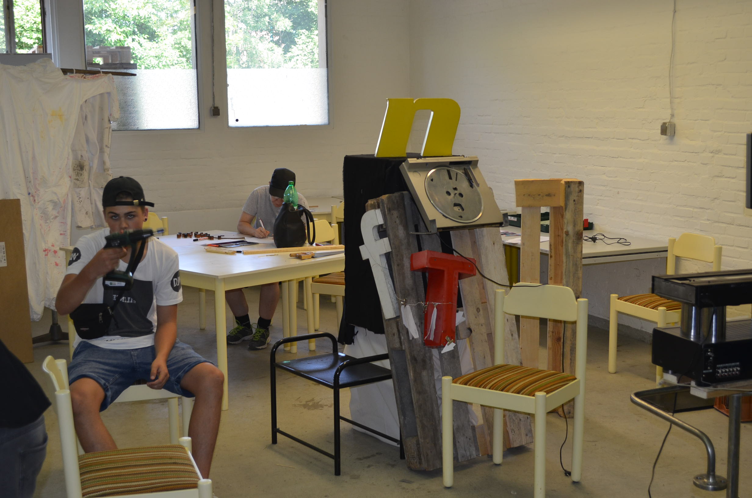 Im Mixed-Media-Workshop in der Sommerwerkstatt war handwerkliches Geschick gefragt. Aus Computern, Leinwänden, alten Aufnahmegeräten und Schreibmaschinen stellten die Jugendlichen neue futuristische und interaktvie Skulpturen her. Die Teilnehmer*innen wurden zu Architekt*innen und Designer*innen und entwickelt aus Materialien vergangener Zeit, neuartige und fantastische Objekte.